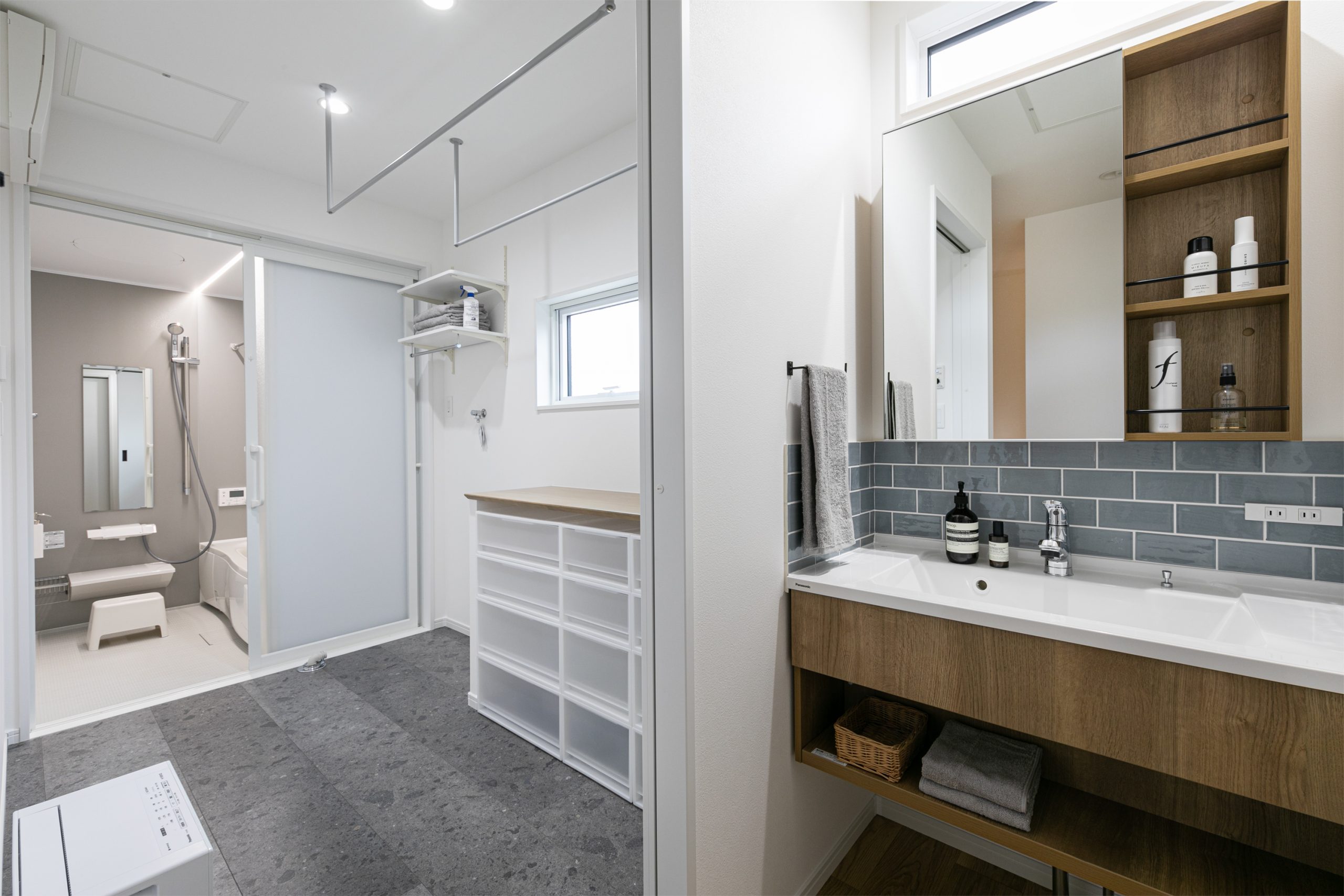 ●脱衣所を兼ねた広々ランドリールーム